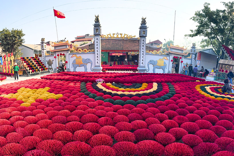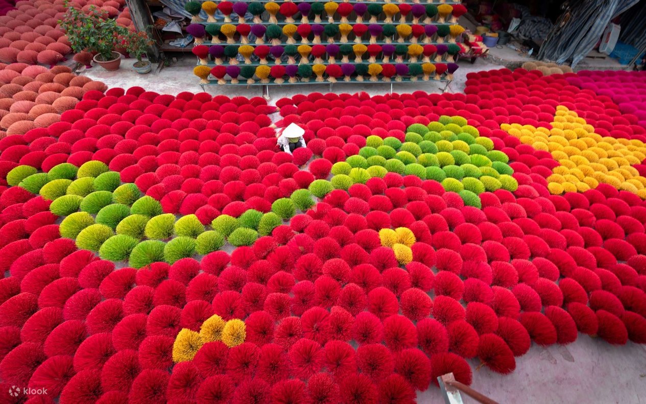 08:45 – Arrive at Quang Phu Cau Incense Village. Explore the traditional incense-making process, walk through the village, and take colorful photos of this unique craft village.